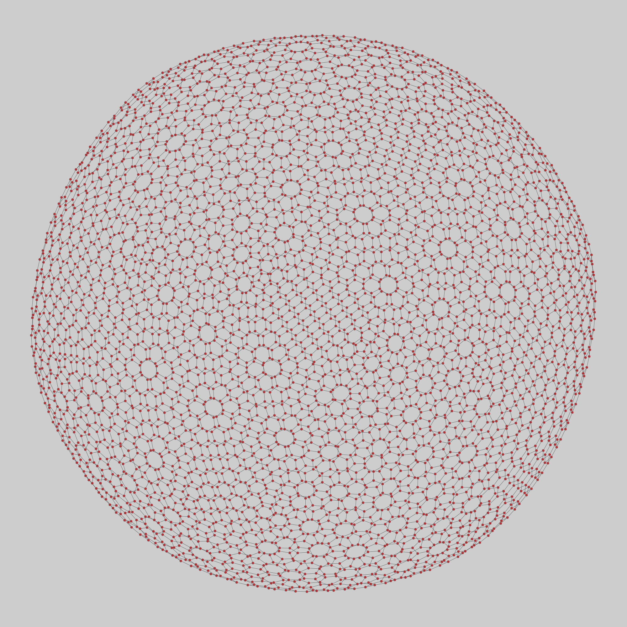 Fifteen networks of carbon atoms and the atomic bonds that connect them within molecules of fullerenes, from 60 atoms up to 6000 atoms. A bond is defined to exist whenever the distance of two atoms is less than 1.5 angstrom.1